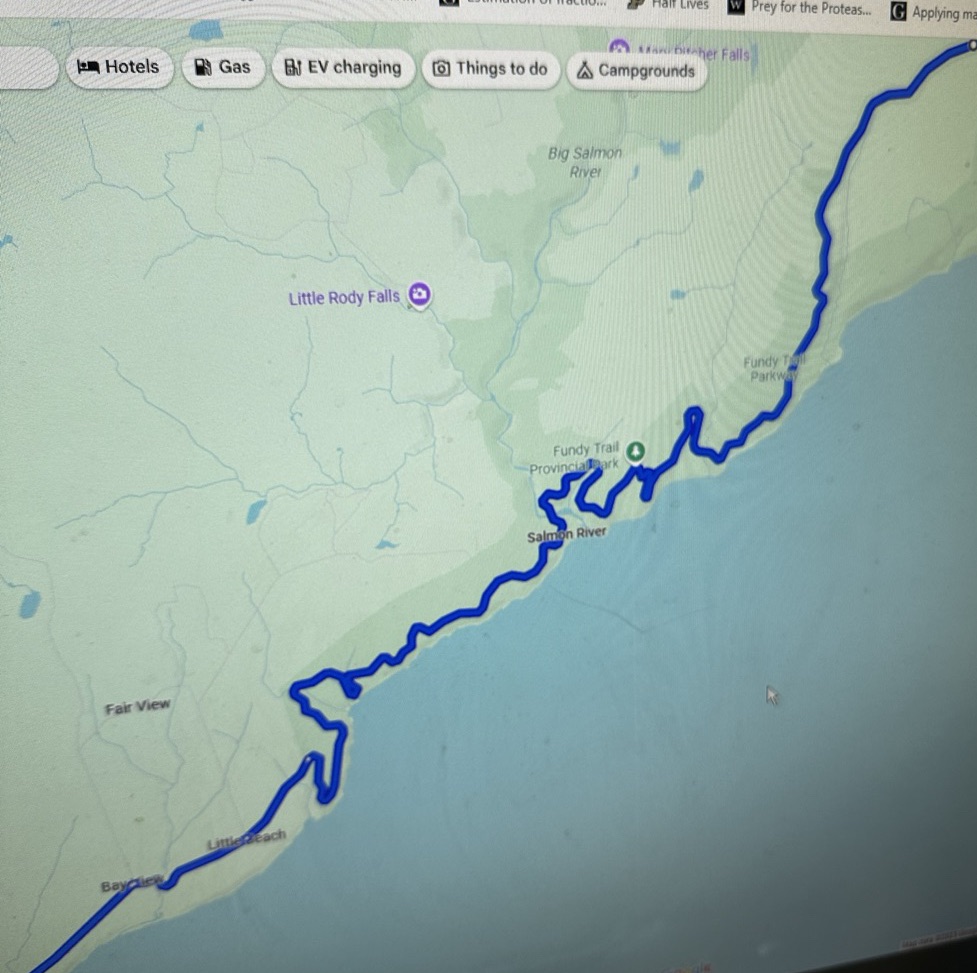 The next morning, I rolled out early and made my way to the Lubec Lighthouse — the easternmost point in the U.S. and a perfect spot to watch the first light touch the Atlantic. From there, I crossed back into Canada 🇨🇦, heading toward Saint John, New Brunswick, where the coastal air, friendly locals, and winding roads reminded me why I chase horizons in the first place. Along the way to Nova Scotia, I rode the breathtaking Fundy Trail Parkway and got lucky with a low tide! and stood beneath the towering tides at Hopewell Rocks. 🪨 on the trail, I managed to drop my phone and went on a mini side quest to find a fix-it cell phone shop — good times! 😅 Let’s just say I always carry a backup phone now.