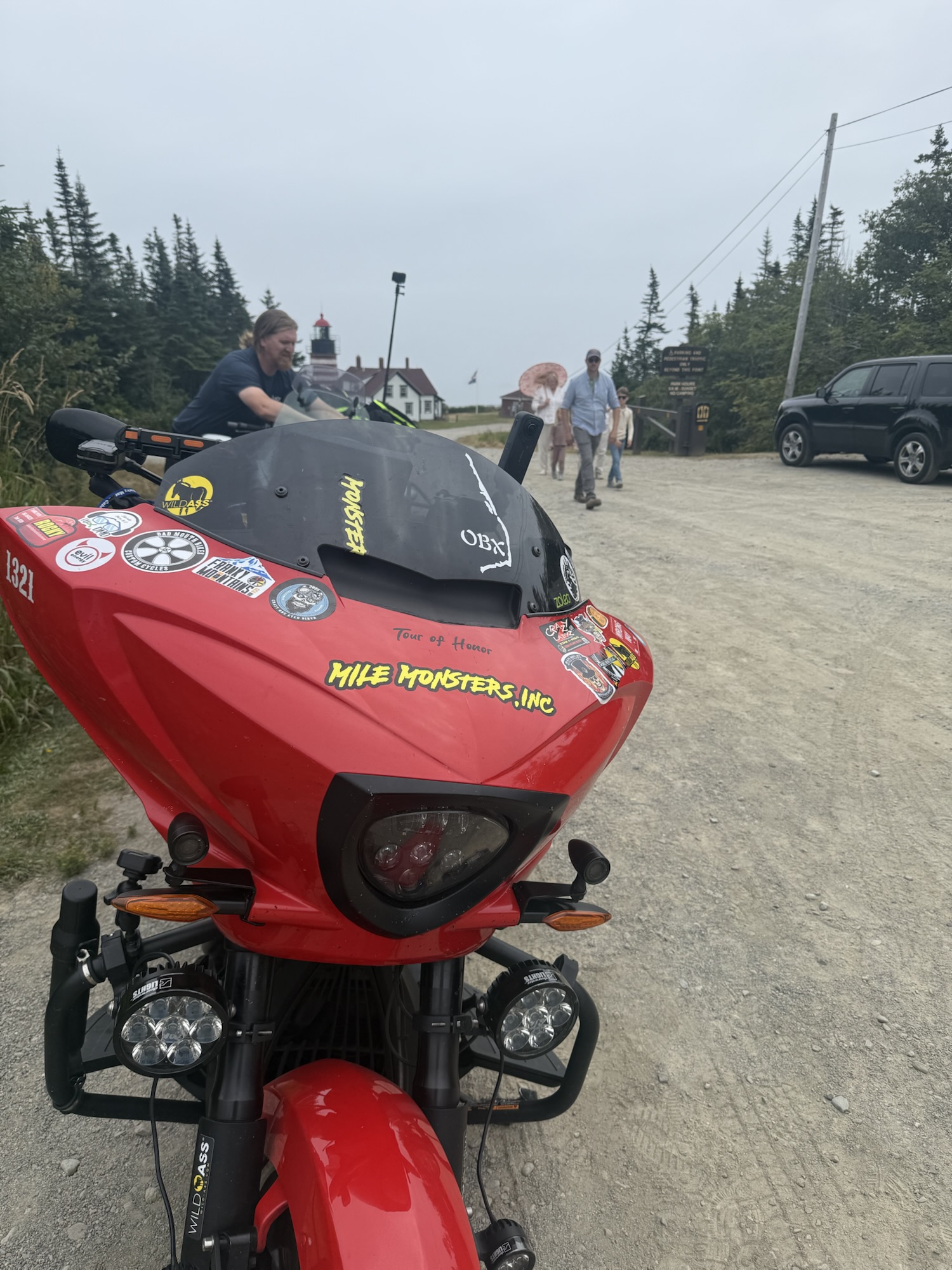 I kicked things off riding through Vermont and New Hampshire, carving backroads and looping around mirror-like lakes before crossing into Quebec to check out Magnetic Hill — a wild optical illusion that messes with your senses. I dumped my bike in the middle of the road doing a U-turn (totally miscalculated the incline of the road!). From there, I dropped back into the U.S., cutting across Maine to the base of Mt. Katahdin, then pushed on to Acadia National Park. I couldn’t resist a late-night lap around the Park Loop Road — spooky shadows, critters darting by, and the sound of waves crashing against the rocks under a moonlit sky. It was eerie, peaceful, and absolutely unforgettable.