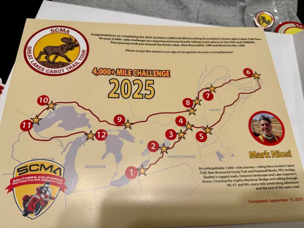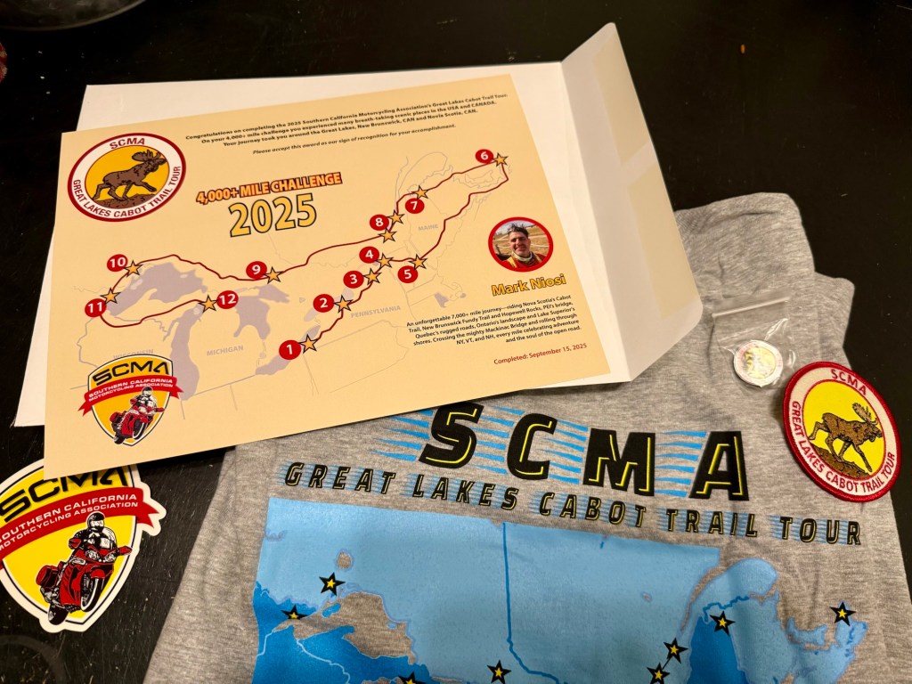 SCMA’s Great Lakes–Cabot Trail Tour award & swag — an unforgettable ride.